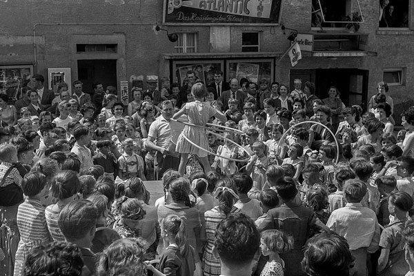 Hula-Hoop-Wettbewerb vor dem Kino, 1960er-Jahre